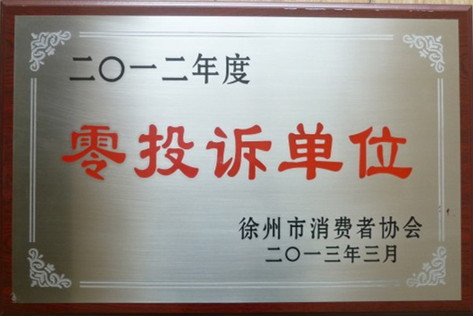 • 徐州市消費者協會頒發零投訴單位